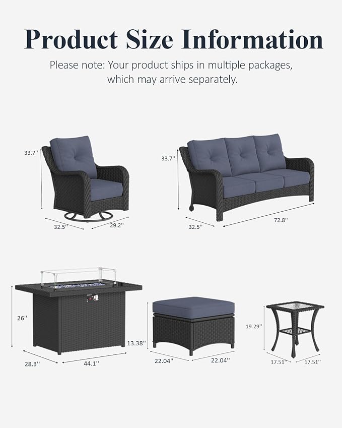 - Size : 8PCS-Sofa Set & Fire table & Ottoman