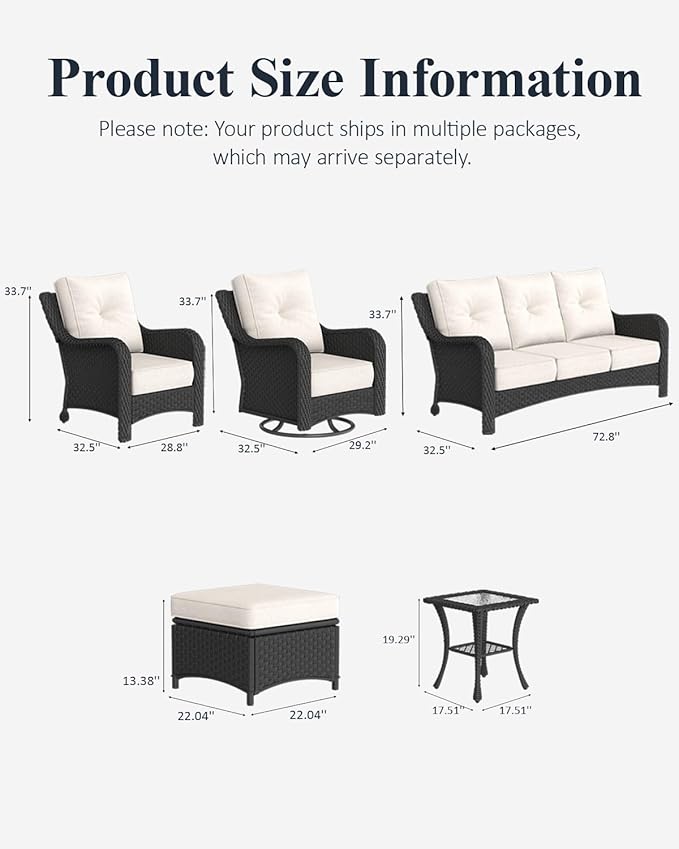 LayinSun 9 Piece Wicker Outdoor Furniture Set with 6-inch Comfy Cushions, High Back Patio Furniture Set with Swivel Rocking Chairs and Side Table