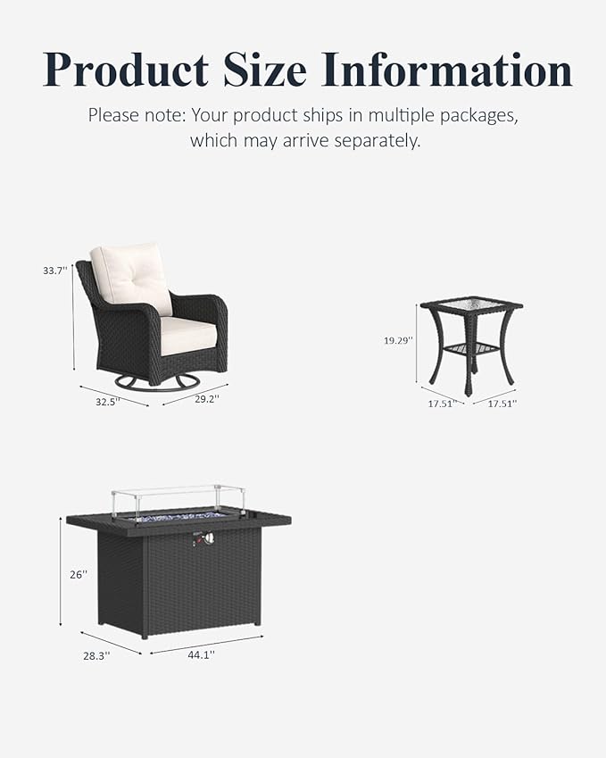- Size : 7PCS-Swivel Chairs Set & Fire table