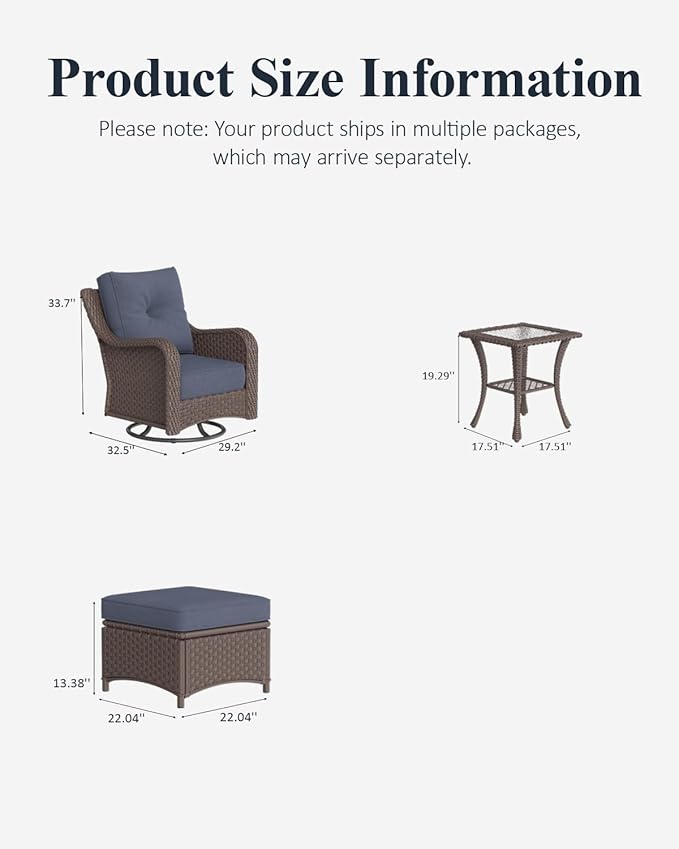 - Size : 5PCS-Swivel Chairs & Ottoman