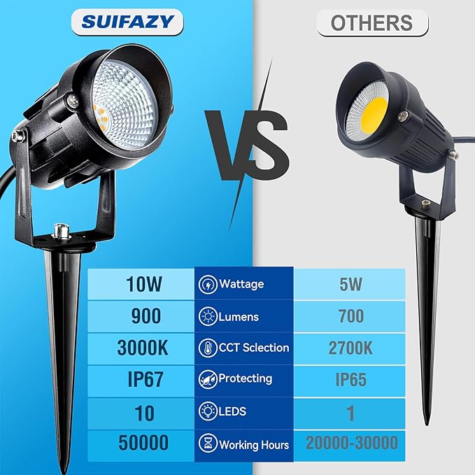 - What You Get - Suifazy 7W Landscape Spotlights(2 Pack), 36-month worry-free period, and 24/7 customer service. If you have any questions, we will resolve your issue within 24 hours.
