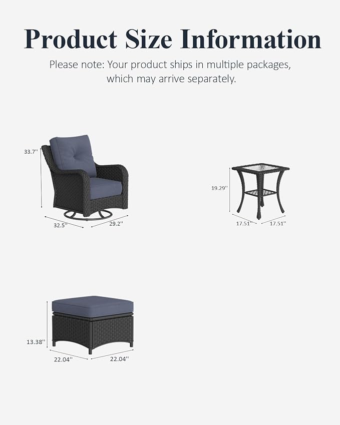 - Size : 5PCS-Swivel Chairs & Ottoman