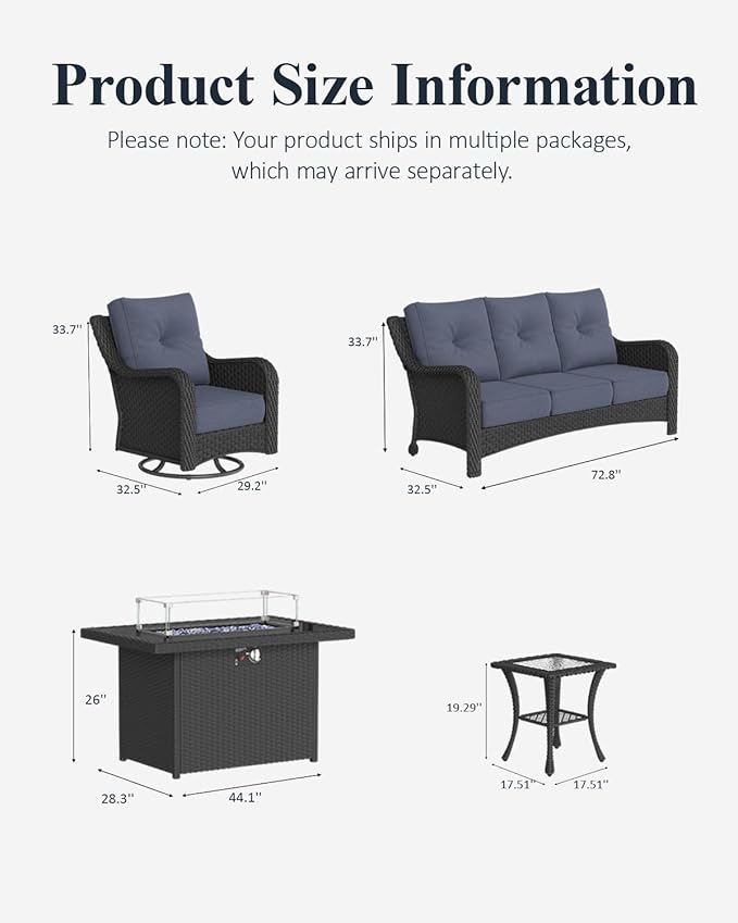 - Size : 5PCS-Swivel Chairs & Fire table