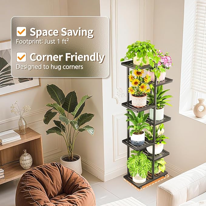 - 【Solid Feel You Can Trust】Worried about unstable stands tipping over? Crafted from upgraded metal that's 30% stronger than typical stands, the plant rack holds even heavy 9-inch pots with ease—no wobble, no tipping. From the moment you unbox it, you’ll feel the difference.