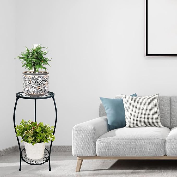 - 【Efficient Space Use】 2 tier plant rack is suitable for indoor,outdoor,bedroom,living room,corridor,sofa corner,hallway,garden and patios, turning your boring small space into a vibrant and elegant scenery.