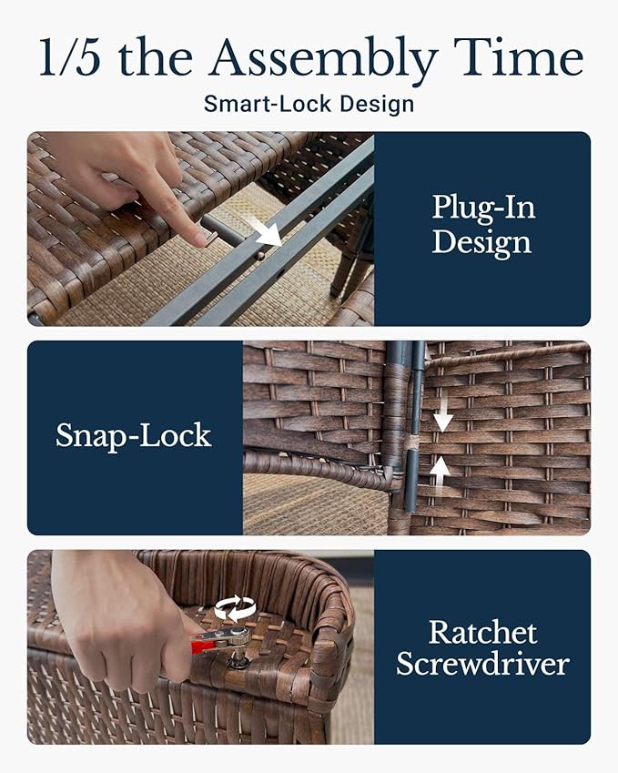 - Unique Quick-Install Design: HILLGA 3rd-Gen upgraded patio furniture uses pin-and-insert structure—each piece needs fewer than 10 screws. Spend more time relaxing in your backyard, garden, or by the pool, and less time assembly