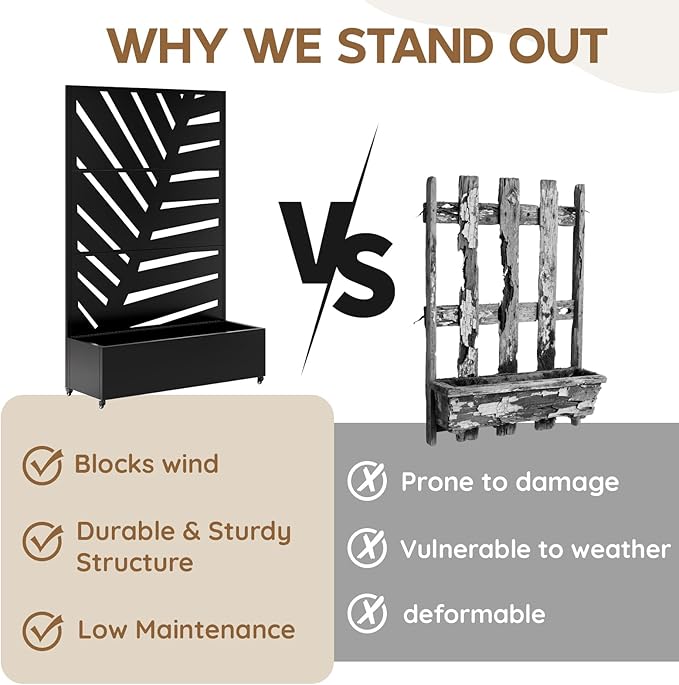 - High-Quality planter boxes outdoor with trellis: This raised planter box with trellis is crafted from premium galvanized metal and treated with a multi-layer reinforced coating. This privacy planters for patio sturdy and stable planter bed with trellis features waterproof and rust-resistant properties, withstanding all weather conditions to ensure long-lasting durability and reliable performance for extended outdoor use.