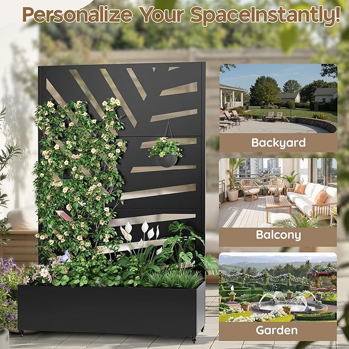 - Multi-Functional Metal raised garden bed with Trellis: This garden bed with Trellis serves as an elevated outdoor garden bed, trellis, and privacy screen—perfect for growing climbing plants, vegetables, and vines. The planter with trellis also doubles as a stylish outdoor privacy screen. It maximizes space efficiency while achieving aesthetic appeal and style for your garden or balcony, keeping your outdoor area neatly organized.