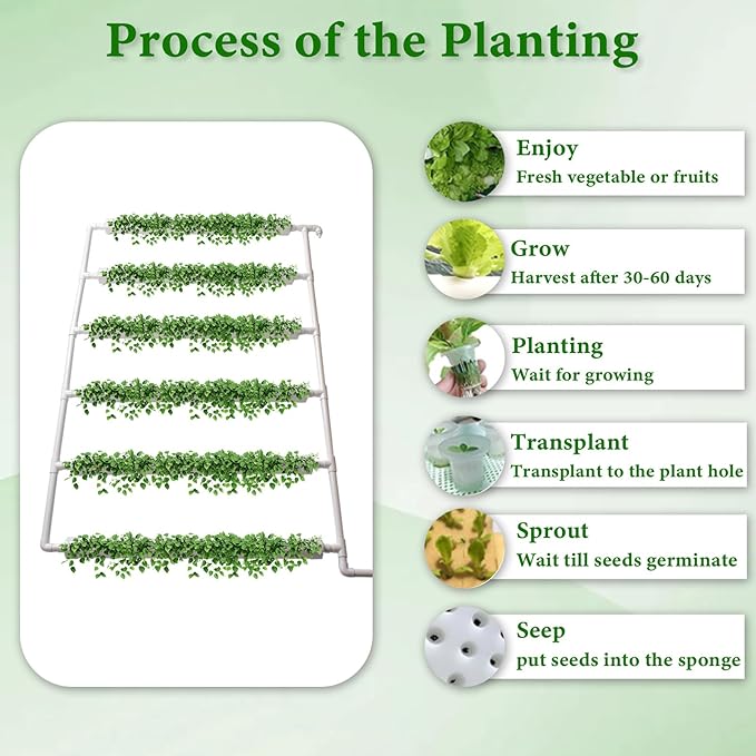 - ▲DURABLE: Each food-grade PVC-U pipe is 31.1 inches long, 2.8 inches in diameter, and features 36 planting slots, suitable for vegetables, flowers, and plants; this PVC hydroponic gardening system kit is suitable for indoor and outdoor walls and gardens.