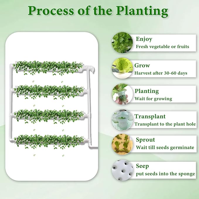 - ▲DURABLE: Each food-grade PVC-U pipe is 31.1 inches long, 2.8 inches in diameter, and features 36 planting slots, suitable for vegetables, flowers, and plants; this PVC hydroponic gardening system kit is suitable for indoor and outdoor walls and gardens.