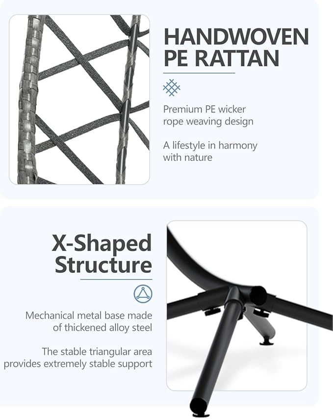 - ★ Built to Last, Rain or Shine: The SWITTE hanging egg chair with stand is made for durability. Its sturdy aluminum-steel frame, rust-resistant finish, and weatherproof wicker are designed for outdoor use but look great indoors, too. The strong base keeps this egg chair swing steady, holding up to 400 lbs