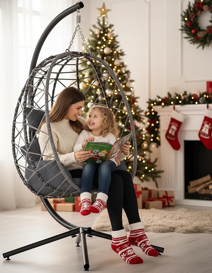 - ★ A Present Everyone Will Love: Surprise friends and family with a swing egg chair. Perfect for all ages, this rocking chair-style egg chair with stand makes an ideal present for holidays, birthdays, or housewarming. It’s practical, beautiful, and something they’ll use every day