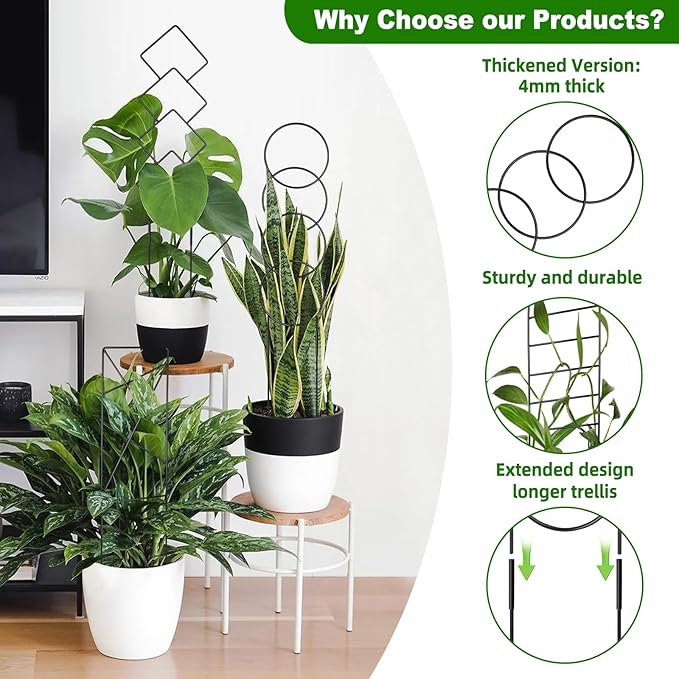 - PLANT TRELLIS SET: The package includes 2 plant trellis and 50 green tie straps, which are enough for you to use and replace. This indoor plant accessories can add fun to your planting