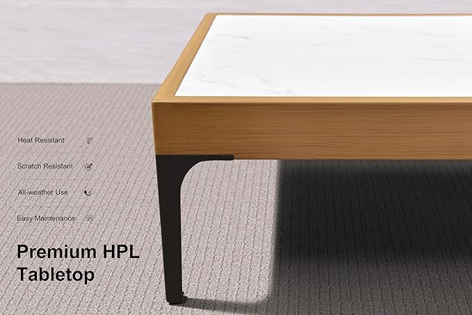 - HPL Tabletop: High-pressure laminate tabletop is engineered to resist scratches, impacts, heat and environmentally neutral while maintaining effortless cleanup.