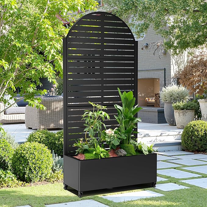 - PORTABLE GARDEN BED: Four sturdy wheels make repositioning this raised garden bed with trellis effortless, allowing you to move it with the sun. The integrated lock keeps privacy planter stable in place, perfect for flexible patio privacy layouts.