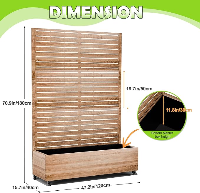 - PORTABLE GARDEN BED: Four sturdy wheels make repositioning this raised garden bed with trellis effortless, allowing you to move it with the sun. The integrated lock keeps privacy planter stable in place, perfect for flexible patio privacy layouts.