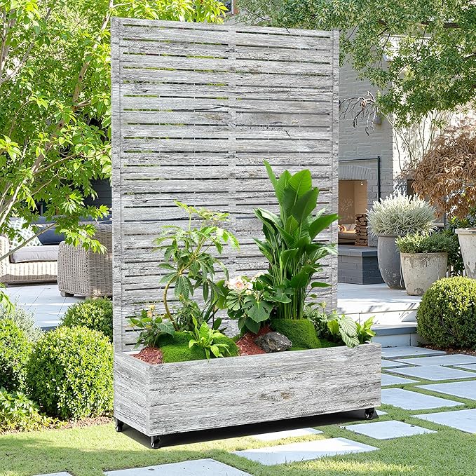 - PORTABLE GARDEN BED: Four sturdy wheels make repositioning this raised garden bed with trellis effortless, allowing you to move it with the sun. The integrated lock keeps privacy planter stable in place, perfect for flexible patio privacy layouts.