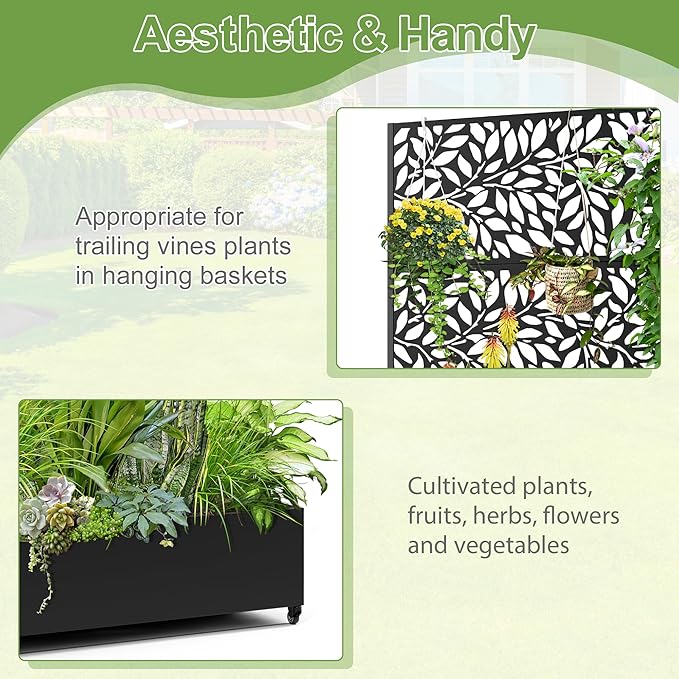 - Suitable for Various Environments This planter with trellis is ideal for gardens, balconies, patios, and greenhouses, perfect for growing flowers, fruits, vegetables, and herbs. It also serves as an privacy planters for patio, creating a tranquil space. Ideal for beautifying your area or enhancing privacy.