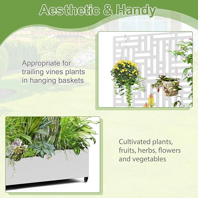 - Suitable for Various Environments This planter with trellis is ideal for gardens, balconies, patios, and greenhouses, perfect for growing flowers, fruits, vegetables, and herbs. It also serves as an privacy planters for patio, creating a tranquil space. Ideal for beautifying your area or enhancing privacy.