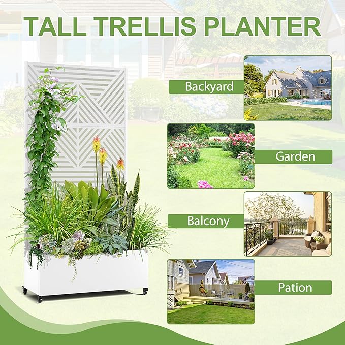 - Suitable for Various Environments This planter with trellis is ideal for gardens, balconies, patios, and greenhouses, perfect for growing flowers, fruits, vegetables, and herbs. It also serves as an privacy planters for patio, creating a tranquil space. Ideal for beautifying your area or enhancing privacy.