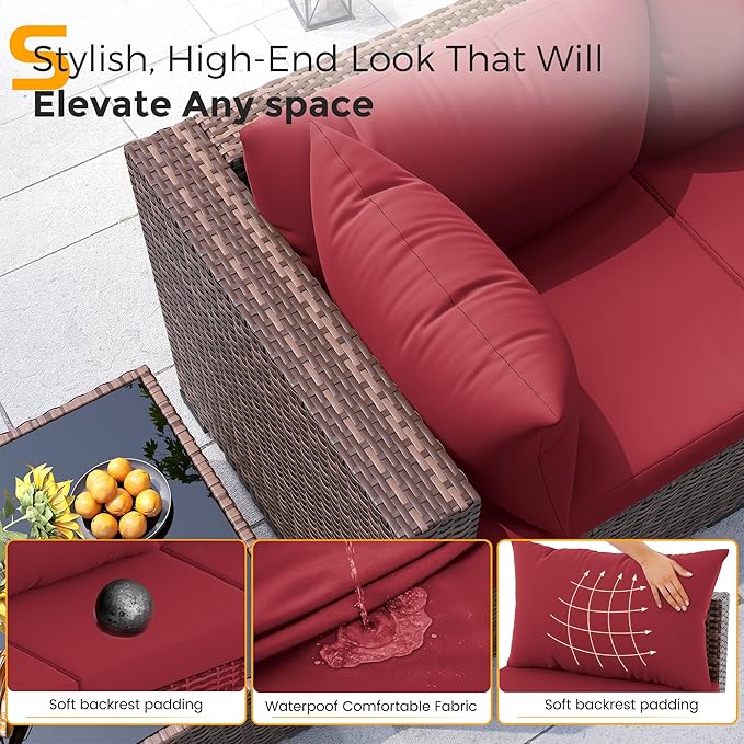 - Fast Setup & Friendly Support: Assembly is easy with step-by-step instructions. This wicker patio furniture set ships in 4 boxes (which may arrive separately). Our based customer support team is always ready to assist—before or after your urchase.