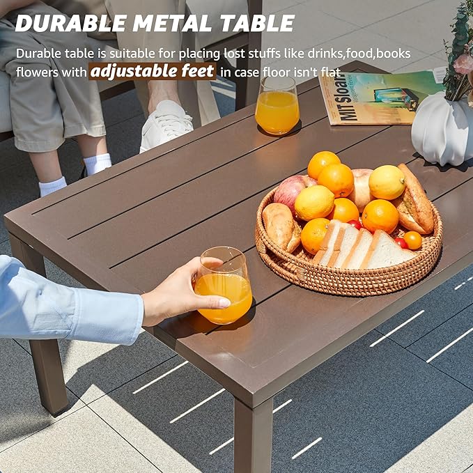 - Sturdy Metal Frame, No Rust or Bent: Metal Patio furniture set is made of high quality sturdy iron material with 3-step corrosion protection: 1st - Meticulous cleaning pretreatment, 2nd- Electrocoating, 3rd-powdercoat, more sturdy, not rust, bent and a longer life span . The patio furniture metal frame is easy to clean and maintain with a damp cloth.