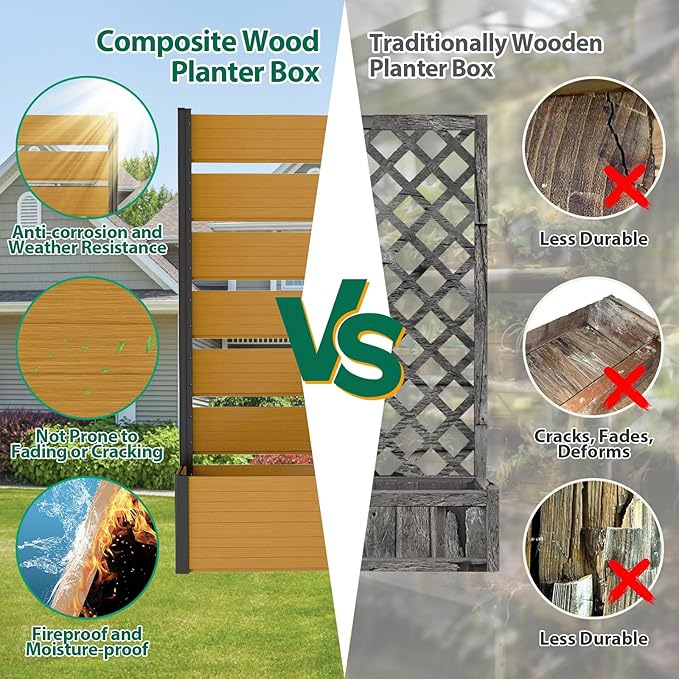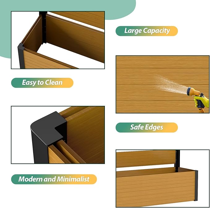 - Durable & Weather-Resistant: Built with weather-resistant composite wood and high-quality aluminum, this planter bed is designed to withstand hot summers, cold winters, and everything in between, ensuring long-lasting beauty and functionality.
