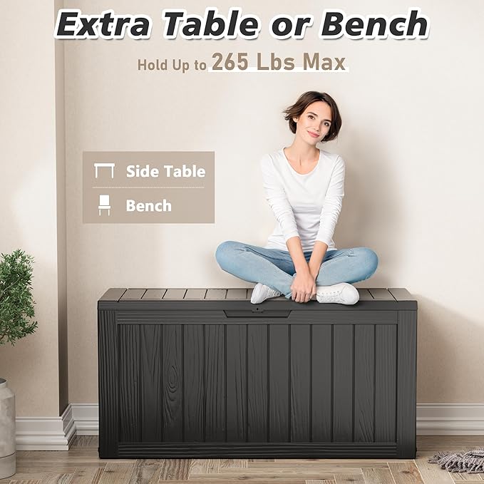 - 👍 Secure and Waterproof Protection: This lockable outdoor storage box (lock not included) offers excellent security for your belongings. Its waterproof design shields items from moisture, ensuring they stay dry and safe in any outdoor setting. Versatile and reliable, this deck box can also serve as a package delivery box by your front door.