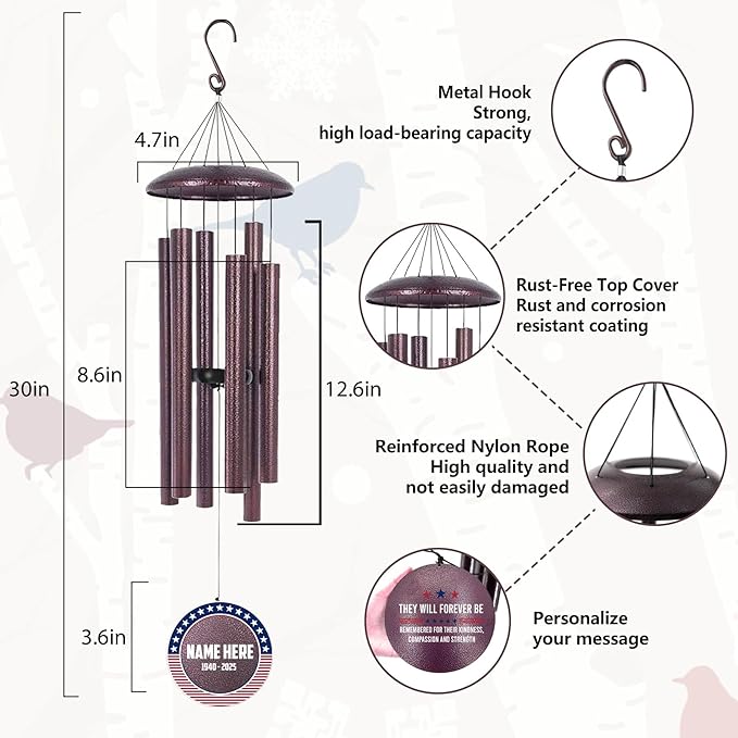 - A BETTER CHOICE THAN FLOWERS: Personalized memorial wind chimes, customized with his/her name and date to keep love in our hearts forever. Our wind chimes are tuned by wind chime experts to crash out beautiful music, a better tribute gift than flowers.