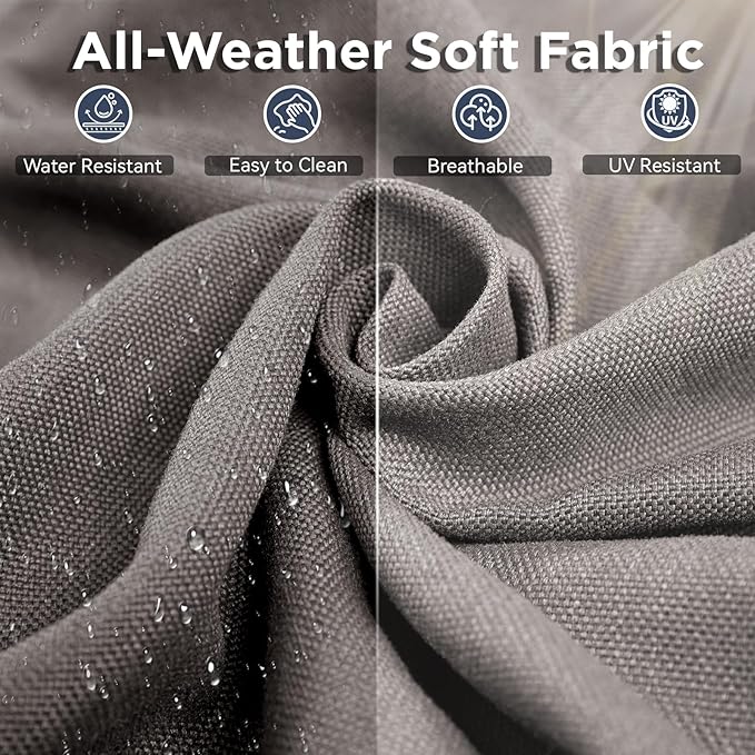 - 【High Density Cushions】Our outdoor patio furniture set come with 4" thick high-density resilient cushion and provide high resilience foam for excellent support, The cushion cover of patio swivel chair is feature UV resistant and waterproof, compared to the standard cushions found in most outdoor sets, it durable & low maintenance.