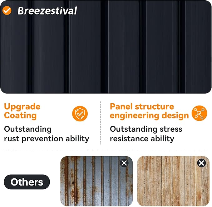 - DURABLE & WEATHERPROOF CONSTRUCTION: Built with a heavy-duty galvanized steel frame and reinforced wall panels, this shed withstands harsh elements for long-lasting use. The thick metal roof provides superior protection against rain, sun, and wind. Engineered for stability with a wind resistance rating of up to Grade 6 (24-30 mph) and a snow load capacity of up to 6 inches, ensuring your belongings are safe in various climates.