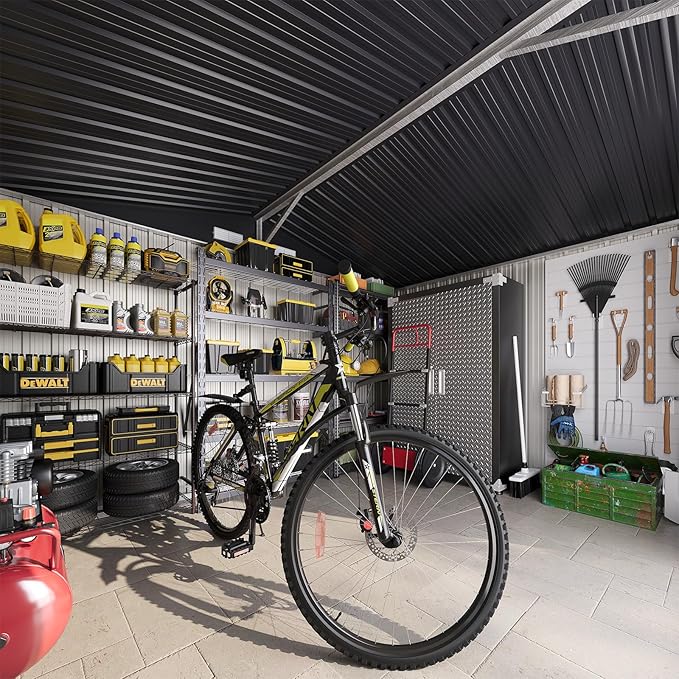- SPACIOUS & VERSATILE STORAGE: Generous 79"L x 50"W x 74"H (6x4 FT) interior offers ample space for lawnmowers, bicycles, trash cans, pool equipment, and more. Optional storage racks (sold separately) help you organize tools and maximize space efficiently.