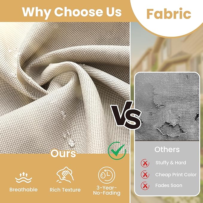 - Texture Woven Fabric: Selected yarn dyed woven fabric, the yarns are dyed and treated before woven into fabric for out door fading resistant and water repellent. Looks and touches with high-end woven texture. No more worry about getting cheaply made thin print fabric.Daily use 3 years no fading. Detachable & washable