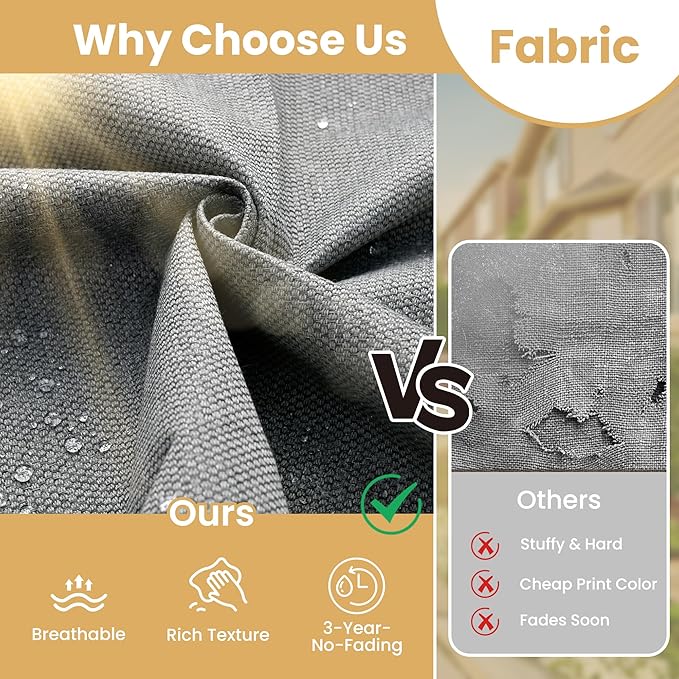 - Texture Woven Fabric: Selected yarn dyed woven fabric, the yarns are dyed and treated before woven into fabric for out door fading resistant and water repellent. Looks and touches with high-end woven texture. No more worry about getting cheaply made thin print fabric.Daily use 3 years no fading. Detachable & washable