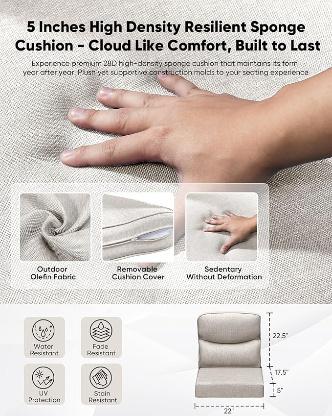 - Ergonomic Comfort Redefined- 5-inch high-density sponge cushions provide cloud-like seating, paired with a layered neck-lumbar backrest that supports your spine. Ottomans double as extra seating or footrests, tucking neatly under the glass茶几 to save space.