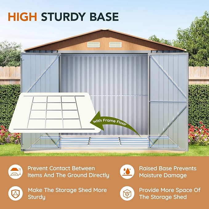 10x12x7.4FT Multi-Used Shed & Outdoor Storage Shed with Base, Lockable Doors, Windows and Vents, Extra Large Metal Shed for Garden,Backyard, Patio,Utility, Various Storage Shed(Matte Gray)