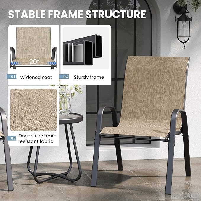 - 【Stable Steel Frame】 Built with a high-quality alloy steel frame that’s sleek, sturdy, and durable. Our outdoor dining chairs strong enough for daily use and designed to last through the seasons.