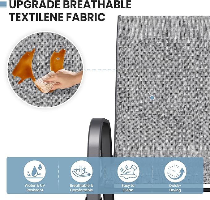 - 【All-Weather Fabric】 Crafted with breathable mesh that resists fading, tearing, and wear. Quick-drying and durable, keeping your chairs fresh and comfortable year-round.