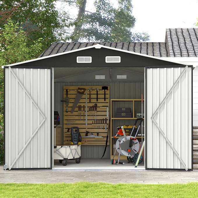 - Robust Construction for Long-Lasting Durability and Stability: Crafted from robust, thick-gauge galvanized steel with reinforced panels and a strong frame, this storage shed offers exceptional resistance to dents, rust, and harsh weather conditions such as rain, wind, and sun. It is engineered to maintain long-term structural stability, delivering reliable, worry-free performance season after season. Moreover, it requires minimal maintenance, saving you time and effort.