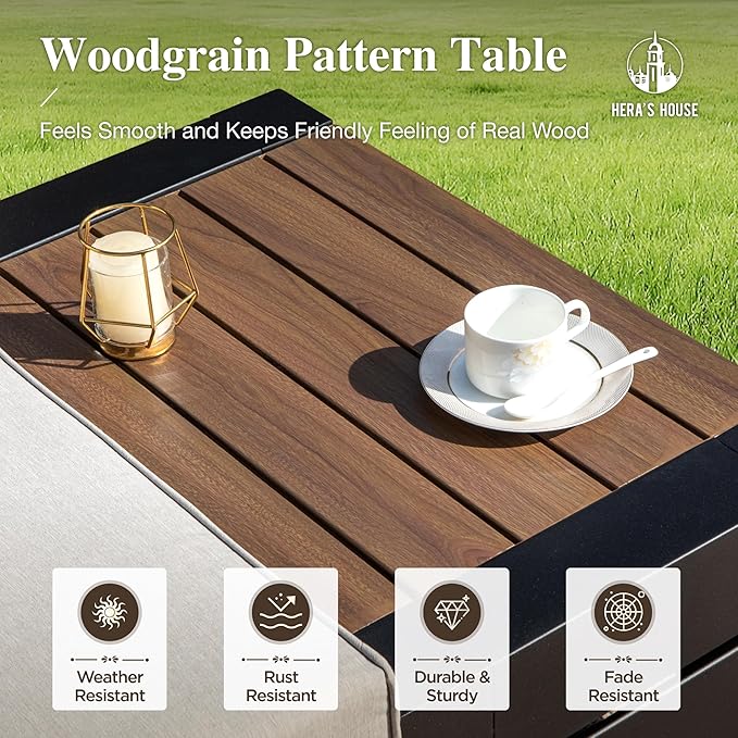 - 【E-Coating & Powder-Coating Technology】All the HERA'S HOUSE metal frame of patio furniture sets are processed by high-performance E-COATING and POWDER-COATING technique which provides extended protection against rust, scratches, rain, and UV harm. All weather resistant, anti-rust, easy to clean, no special care needed