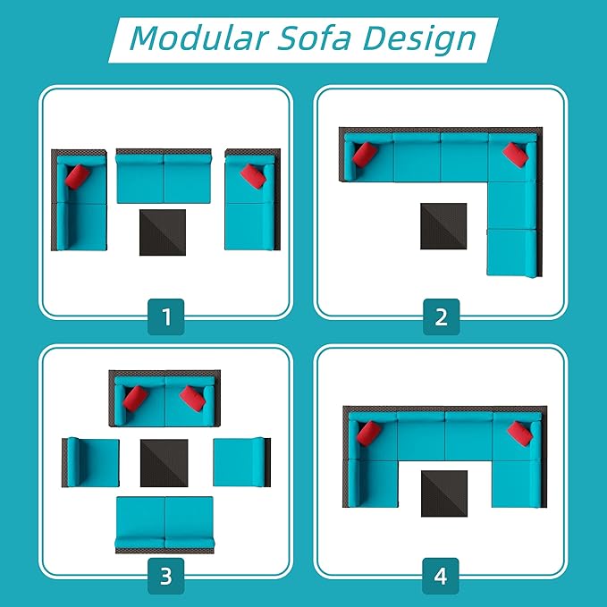 - Easy maintenance: This product contains 13 cushions, which can be removed and washed, cushion surface has special material can waterproof splash, PE wicker very smooth and light, easy to maintain. You don't need to waste a lot of time on maintenance. Cushions are covered in fade-resistant polyester fabric, which is easy to remove and clean