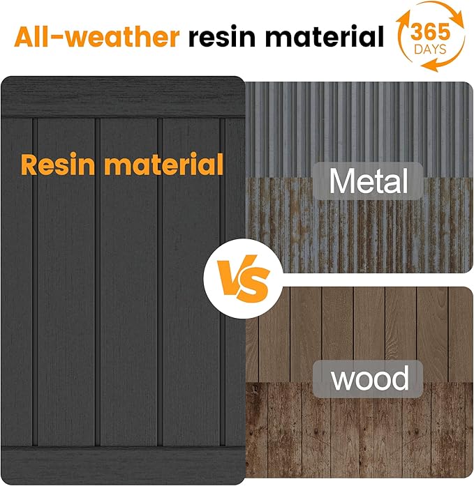 - Sturdy Construction:This outdoor storage shed is made of double-layer resin panels using blow molding technology. Compared with a plastic storage shed, it can bear greater weight, and is not easy to bend or puncture.—making it a durable option in the sheds & outdoor storage category.